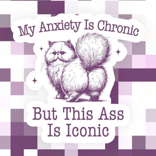 My Anxiety is Chronic But This A*s is Iconic Cat Sticker