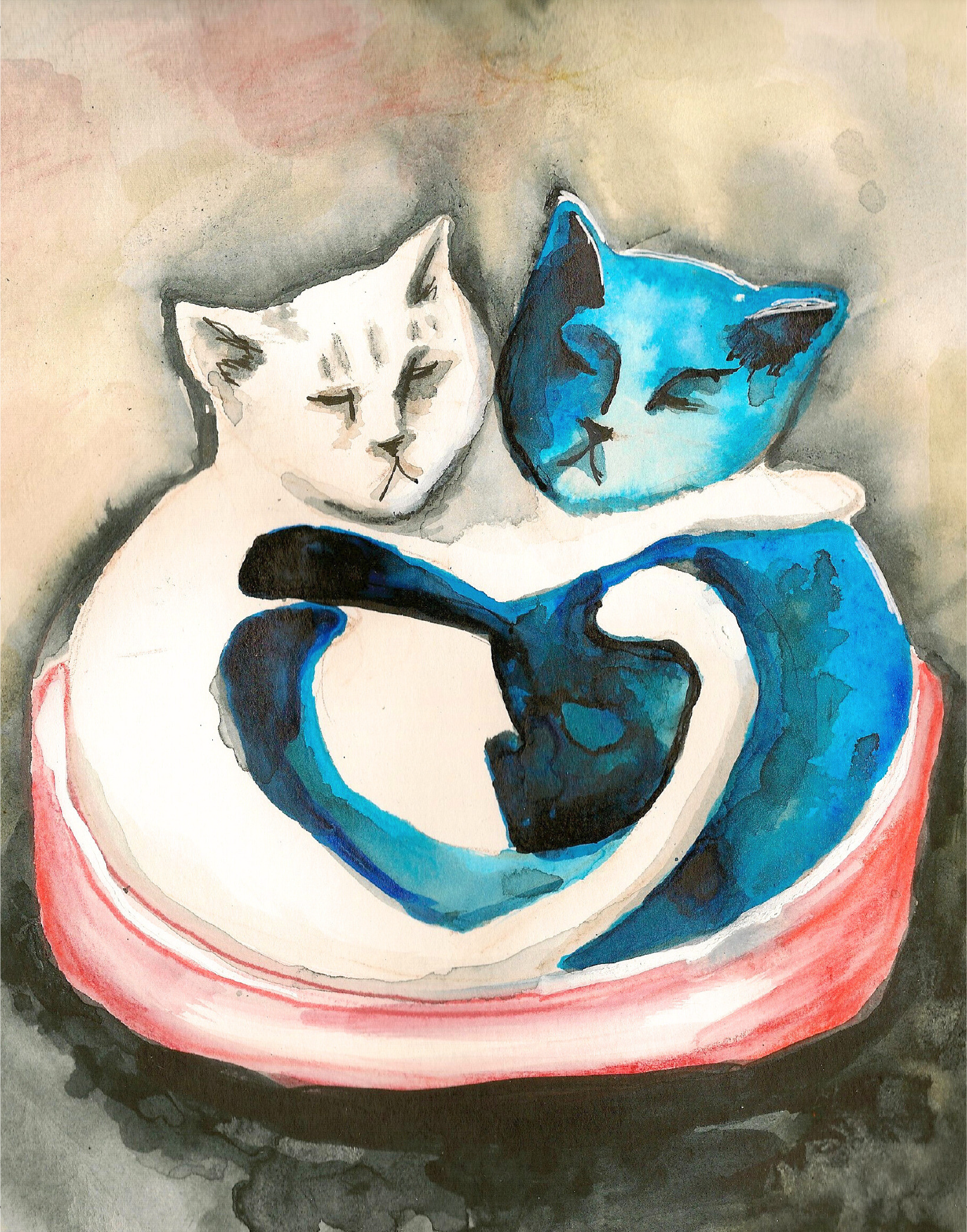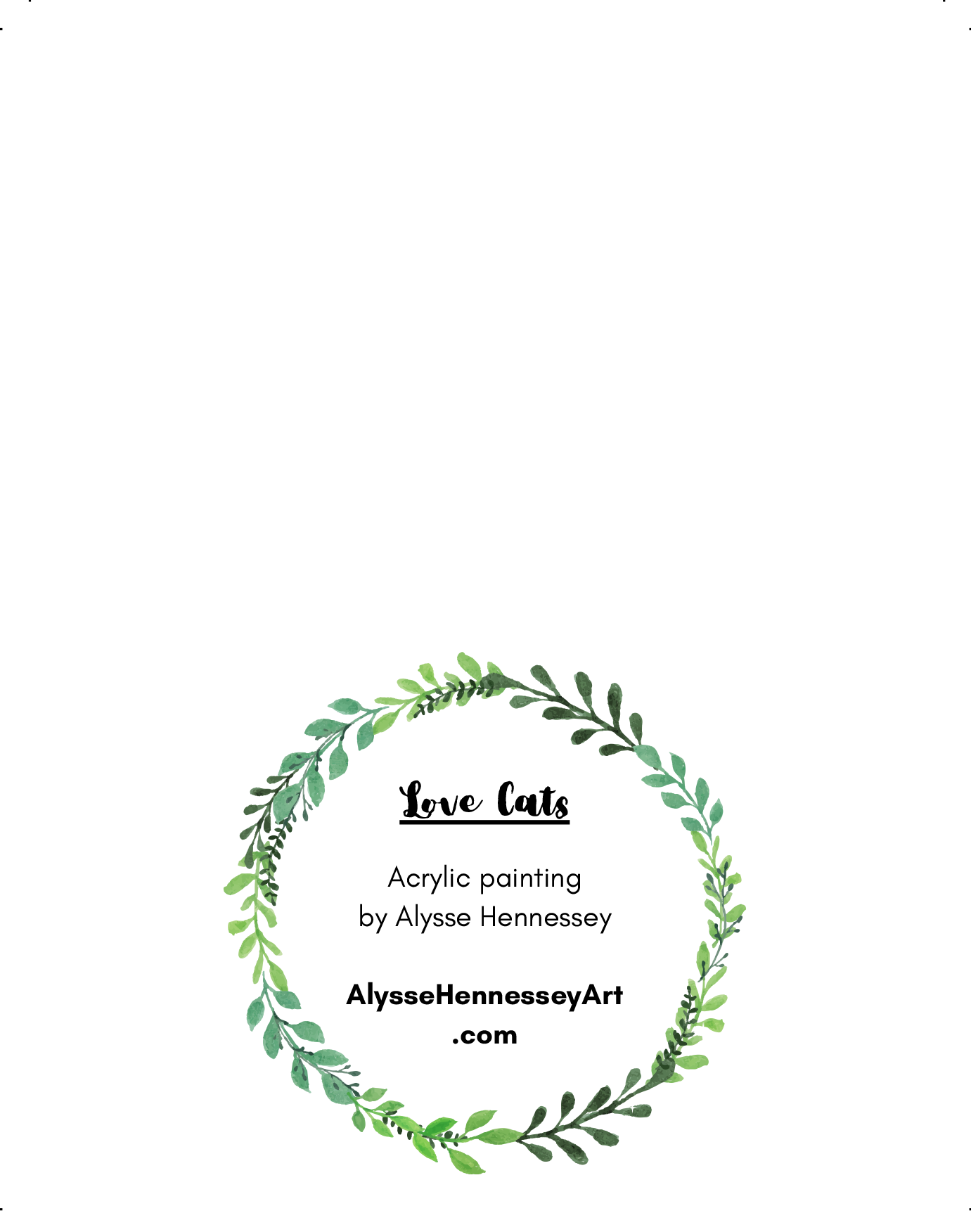Glossy, bright greeting cards, hand painted! "Love Cats" cats popular year around, is part of the love series. Valentine, anniversary, love. 4.5"x5" card with envelope and clear slip cover. Blank inside.