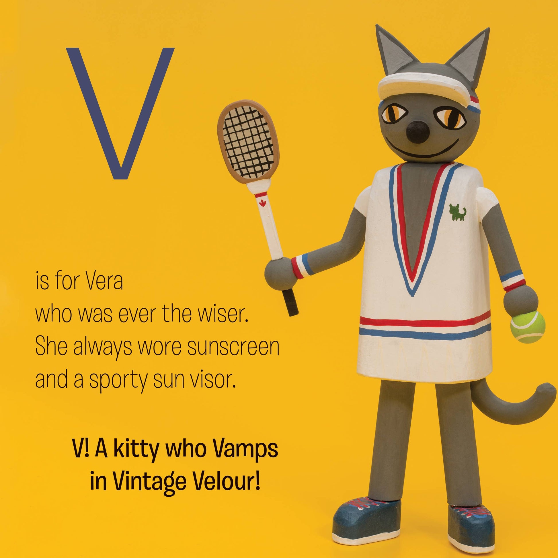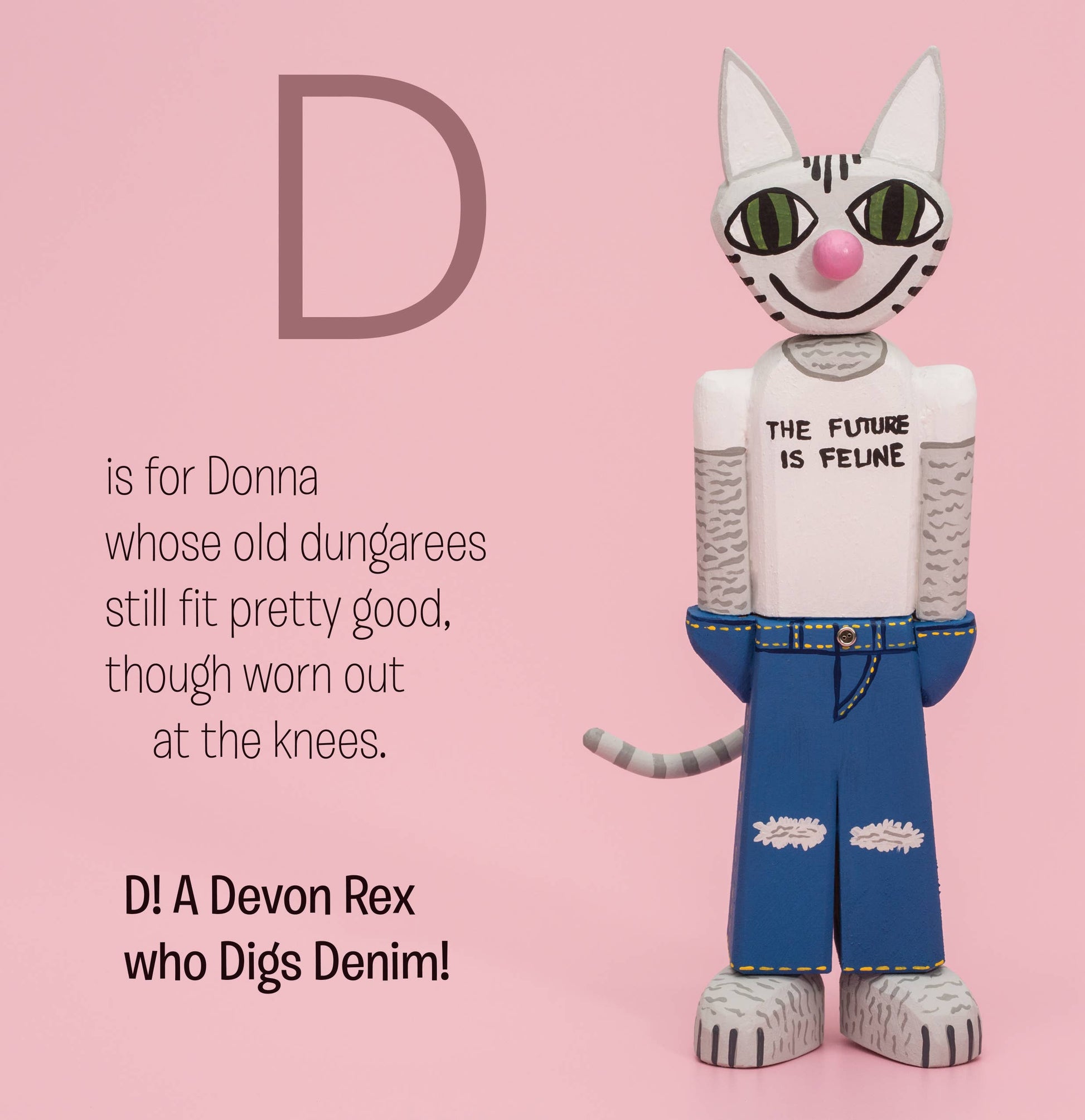This alphabet book, Catabet, stars 26 cats wearing clothing from every letter of the alphabet! Entertaining for all ages--you can learn more about the cats, clothing, and designer-inspired names in the glossary in the back! Although self-published, this hardcover book was printed with high quality inks and is as durable as any book for kids. The cover has an offset gloss on the book title and image, which pops out from the matte background. An artist bio is also in the back so readers can learn a little about her and the processes she used to create the sculptures used for illustrations.