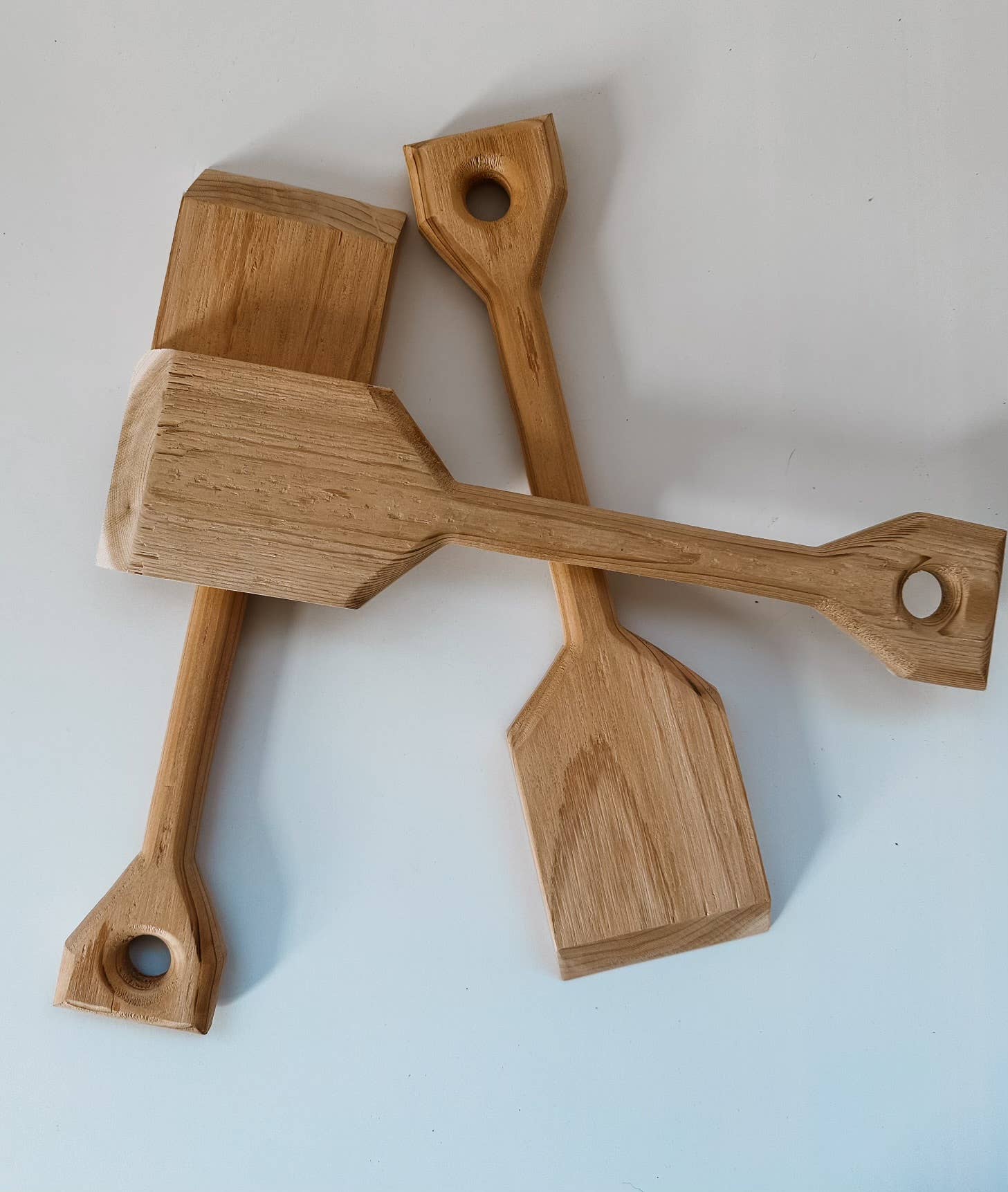 Cedar wood grill scrapers made from Minnesota trees sawn at a local sawmill. The Amish colony we use supply us with rough sawn lumber with unique textures on each scrapper. Sanded smooth on the presentation side while the underneath or grill side may have imperfections that will fade away more with each use on a hot grill. Each one is unique in its own way from the wood grains to the hand cut out shape of the hole on the handle. These grill scrapers will become even more personalized with each use. Simply heat up the grill of your choice and while it remains hot, rub the angled edge on the grill grates, thus creating grooves in the scraper. With each use the scraper adjusts more to the grill. Additionally, it gives off a fantastic burnt smell or campfire smell. These make great gifts for any grill master or someone just starting out! Product Details (may vary slightly) 14" L x 3 1/2" w H