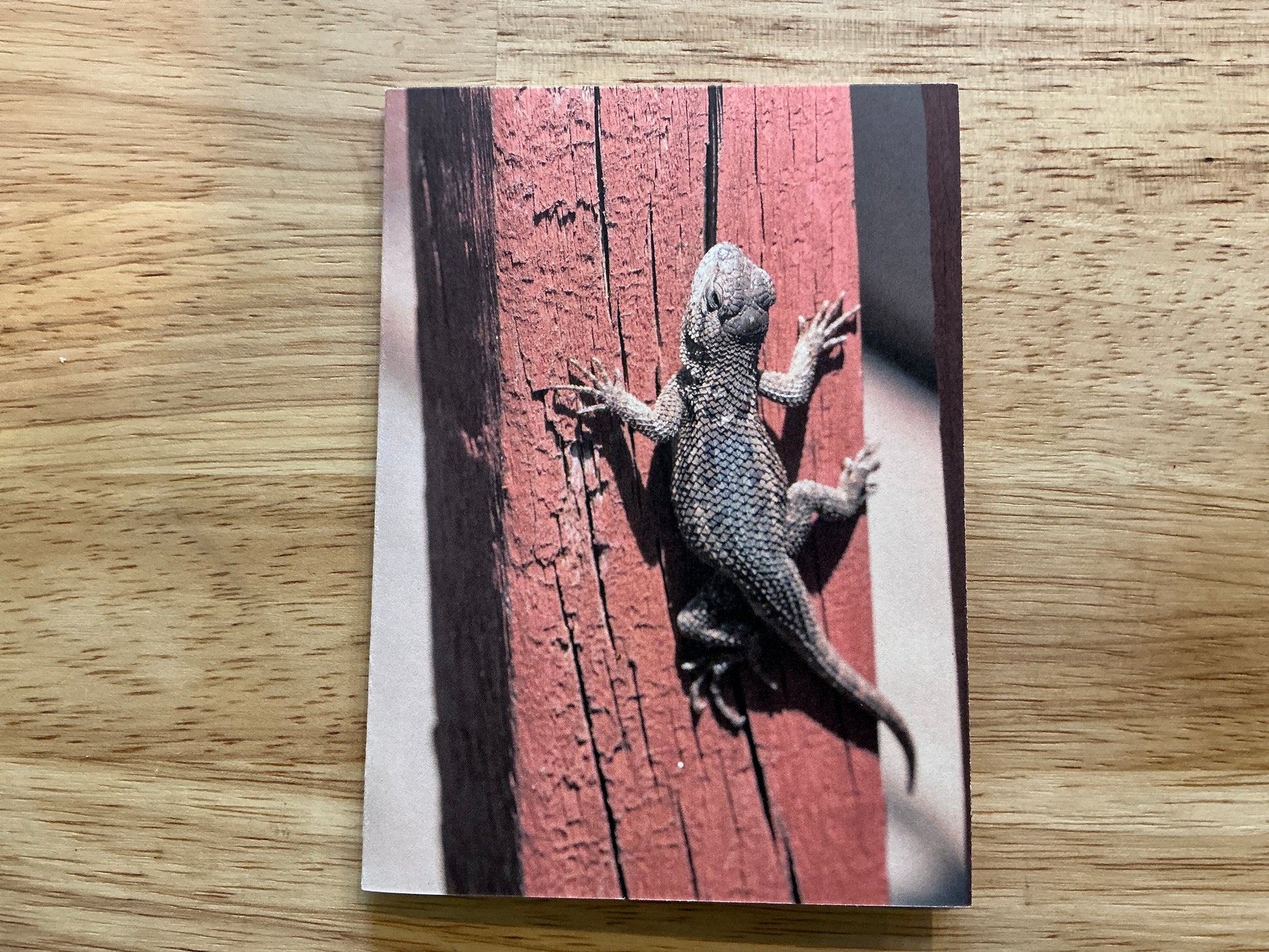 Greeting card of a western fence lizard photographed near Belknap Hot Springs. Includes envelope. Blank inside. Printed on recycled card stock.