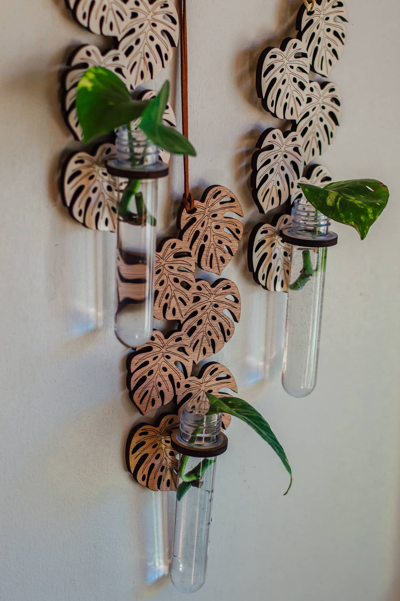 Monstera wall propagation station measures approximately 11.5” x 3.25” including the tube and hanging string.