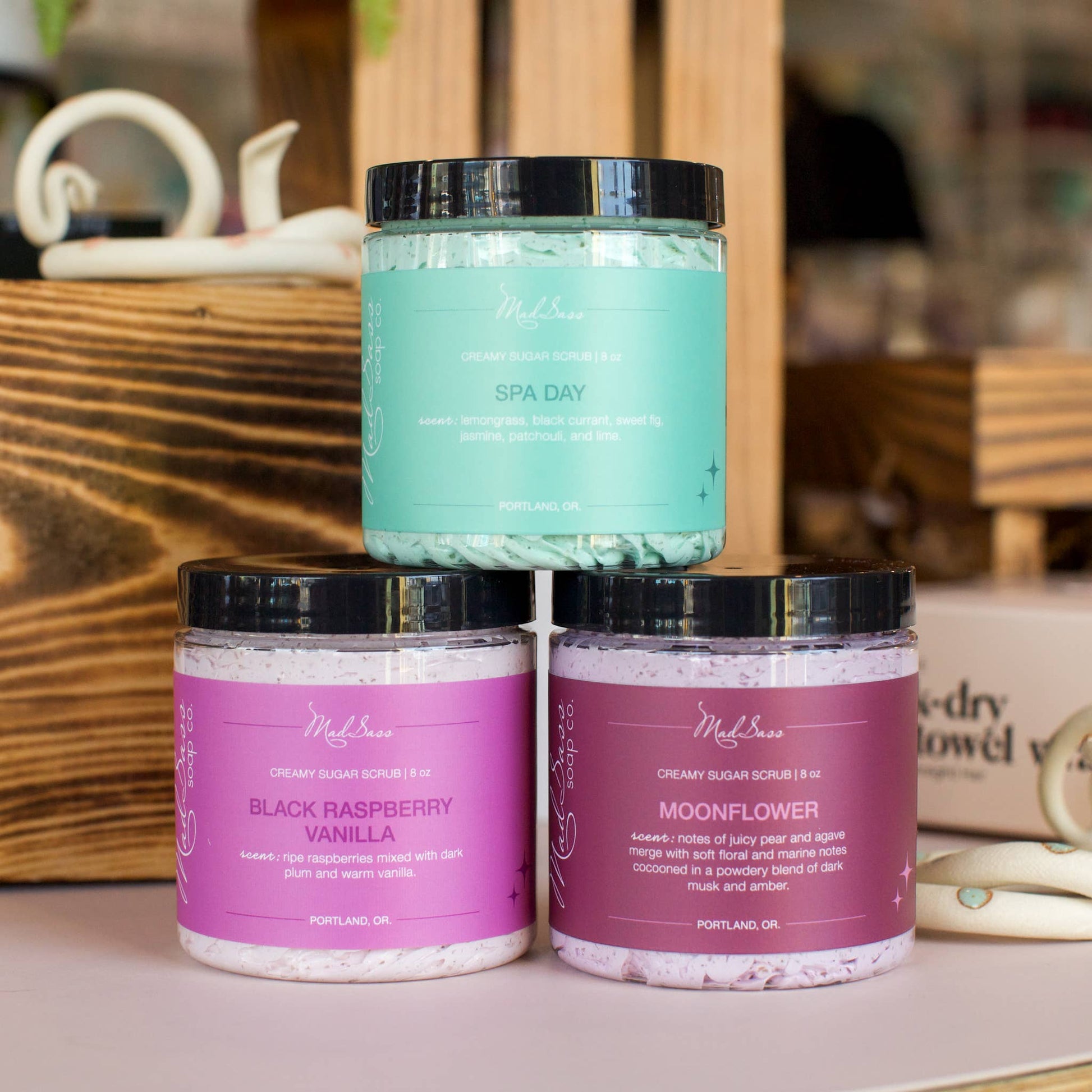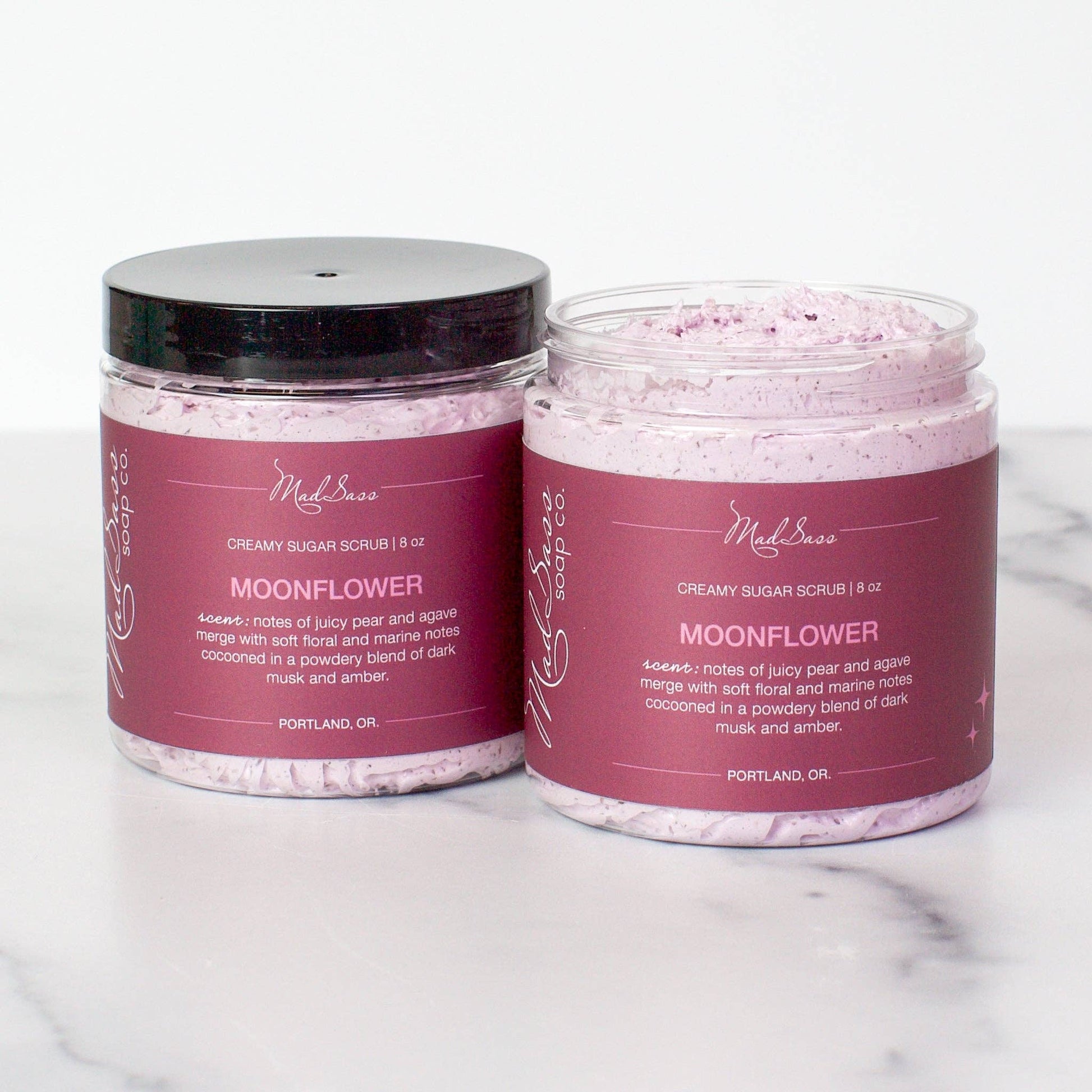 Creamy, hydrating, and exfoliating, our creamy sugar scrubs remove dry dead skin and provide a gentle cleanse and exfoliation. Whipped to perfection, sunflower oil and cocoa butter combine with Vitamin E and Aloe Vera for a luxurious scrub that will leave your skin silky soft and smooth. Hot tip: use as a shaving cream for an extra smooth shave.