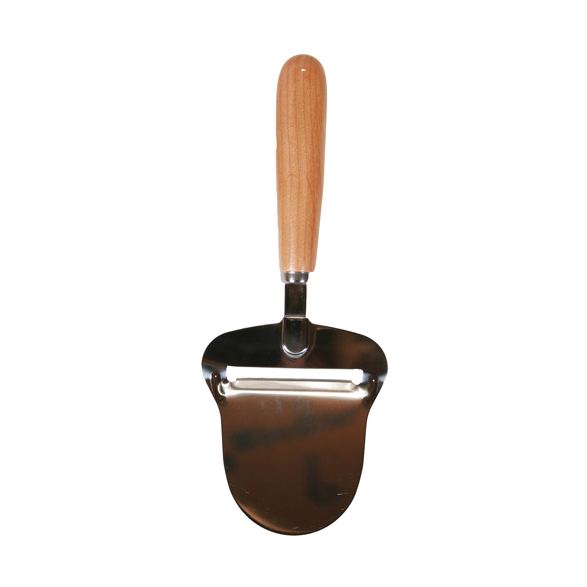 This cheese planer has a Stainless Steel Blade that is very sharp making this knife perfect for slicing hard cheeses and butters. The handle is Alder wood with a clear lacquer finish.
