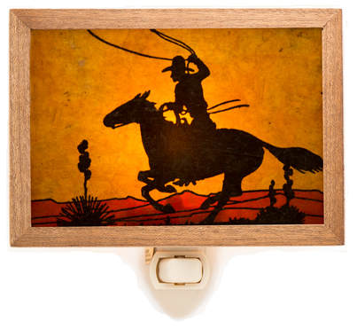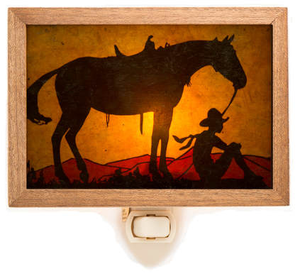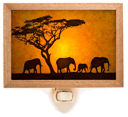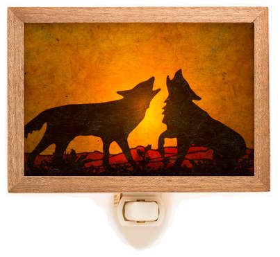 These rustic night lights are made with a thin sheet of mica. When illuminated, they give off a soft, warm glow that will guide your way in the dark. They are beautiful and comforting in any room. The frames are made of rich, natural hardwood. The image area is about 3.5 x 5 inches. The night lights pivot from side to side for more convenient viewing and optimal placement in any room. Each night light comes with a UL-approved switch component and a 7 watt bulb that can be replaced with any standard night light bulb (incandescent or LED) of 7 watts or less.