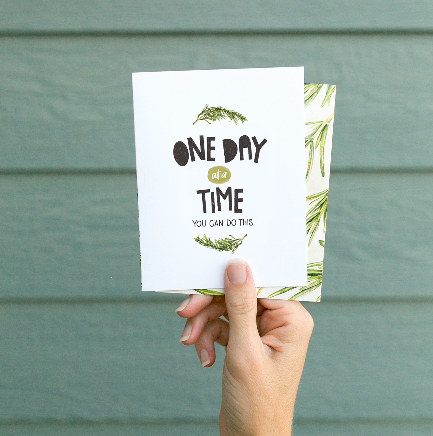 Applicable in so many situations, gift this card to someone needing a little extra support. Originally designed to send to the mama struggling through a miscarriage, infertility, bedrest, or just a tough pregnancy, let her know she’s supported and that she can make it through any situation by taking each day as it comes. The best part? This card would be applicable to SO many different situations.