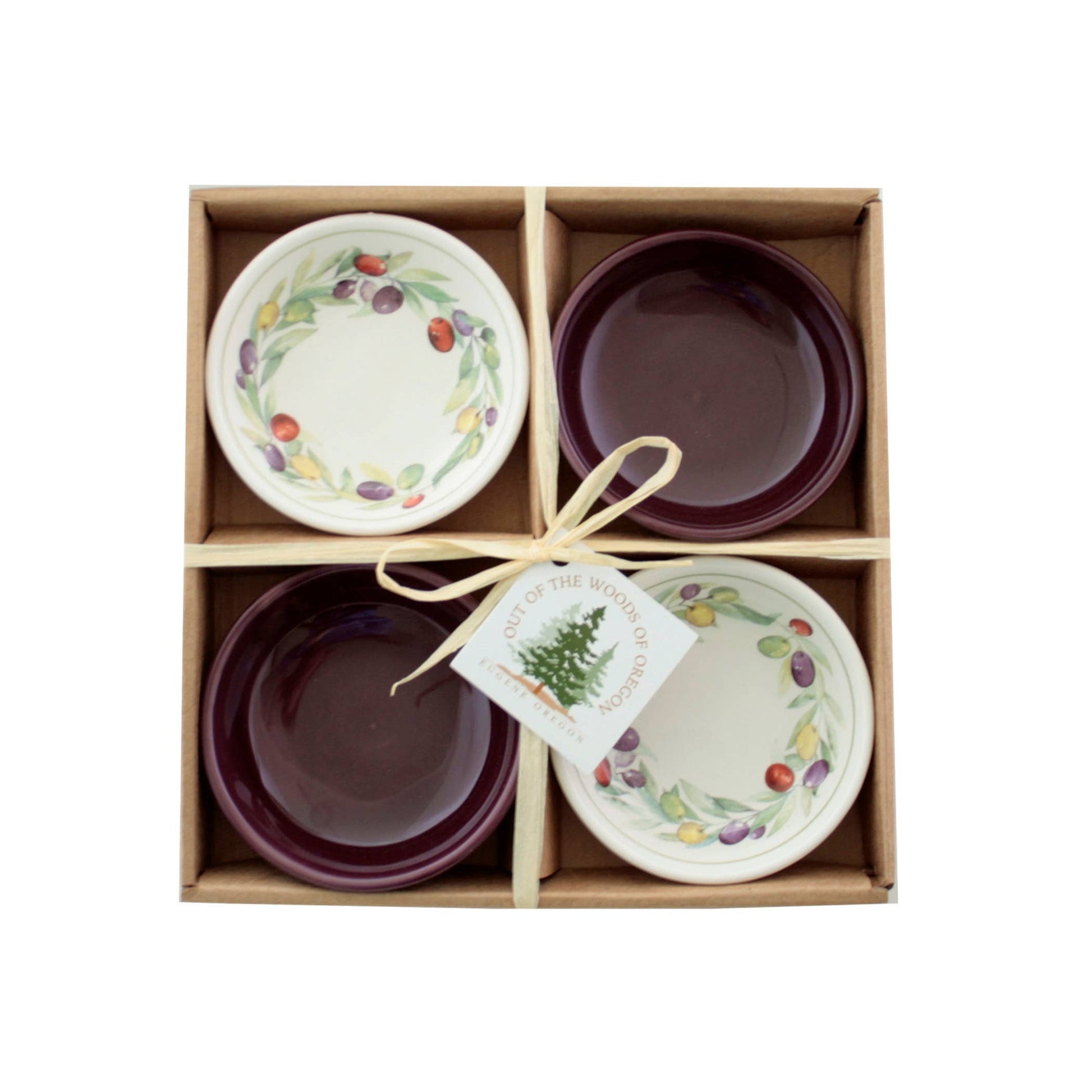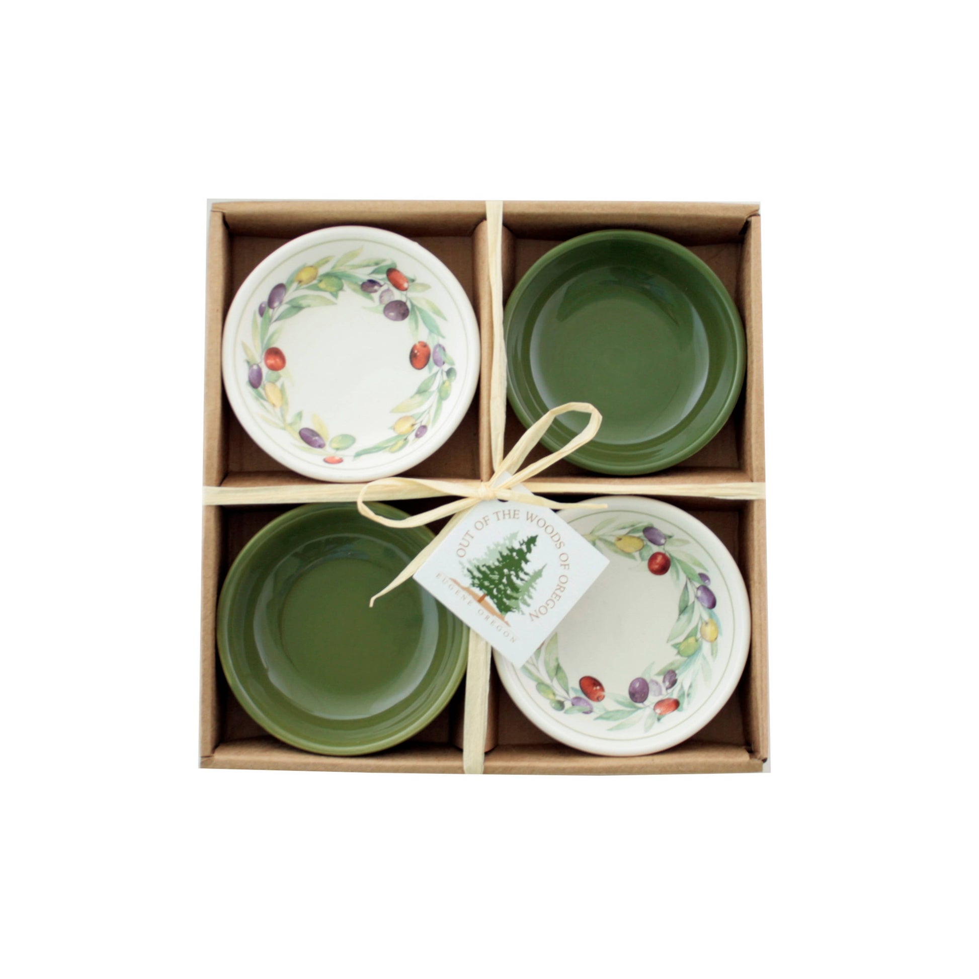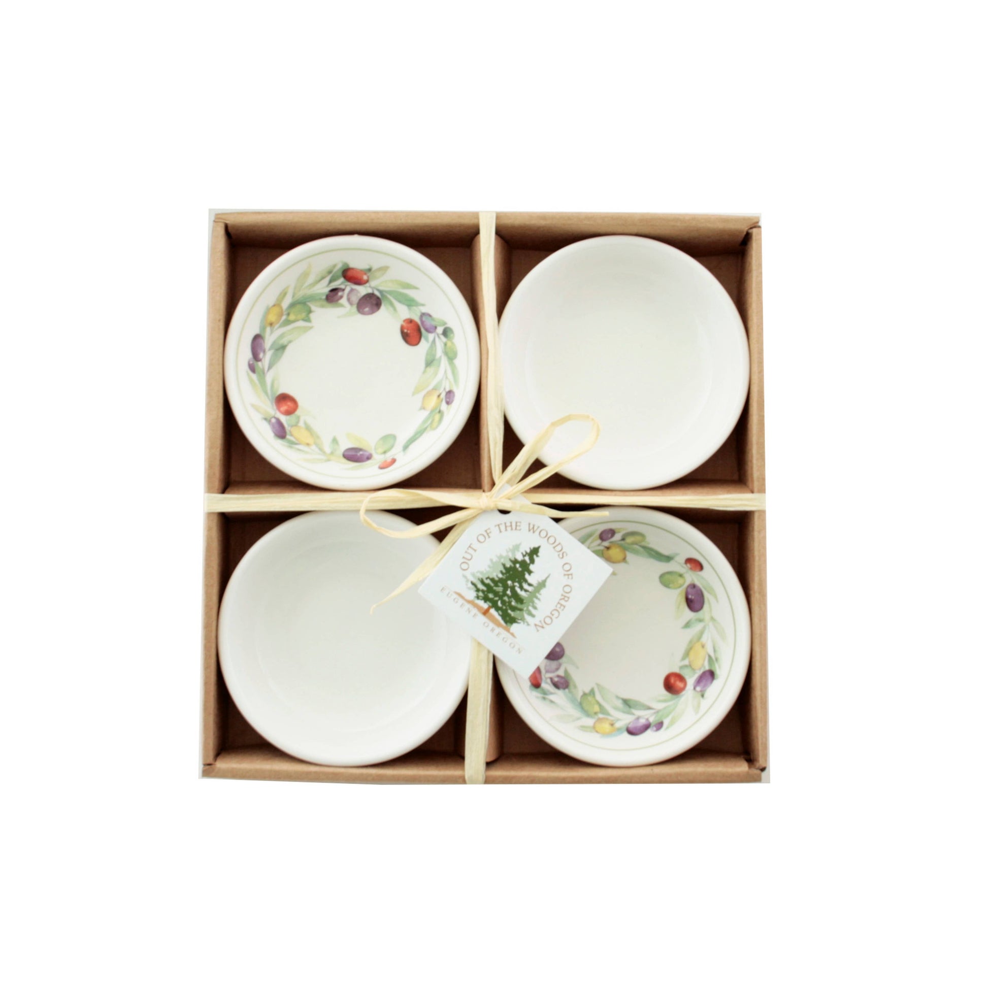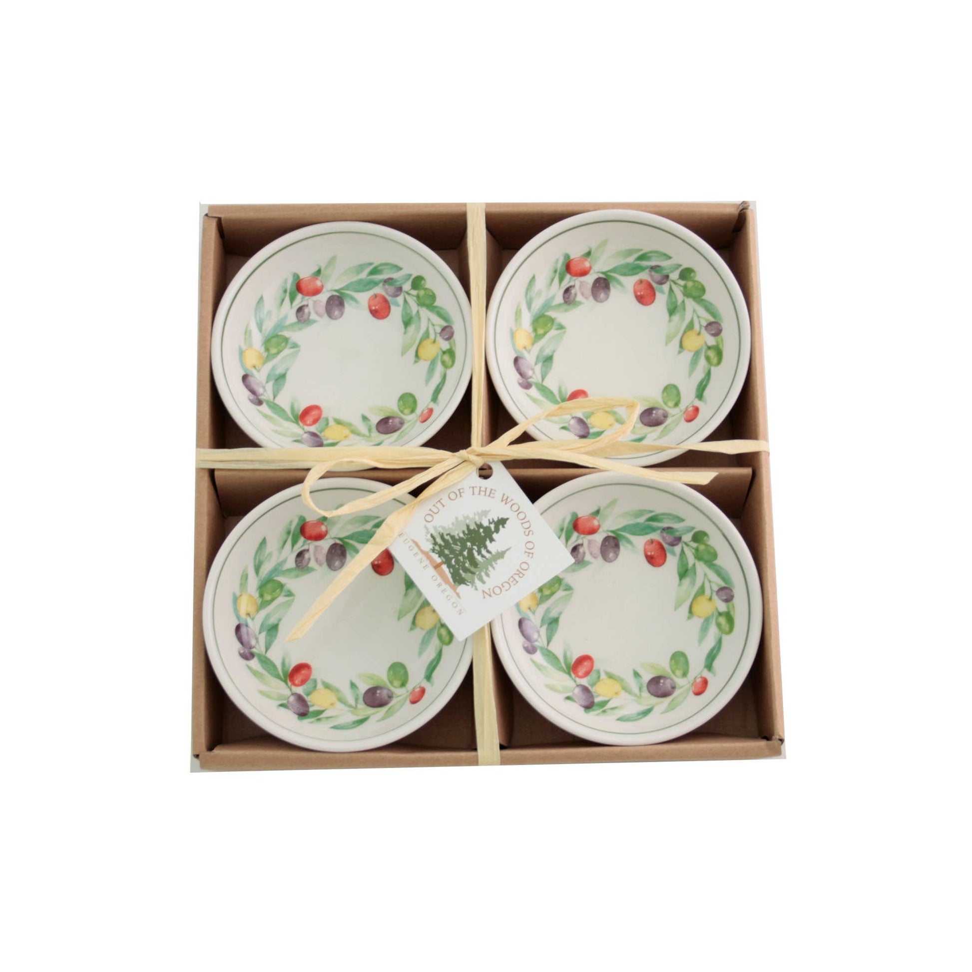 Set of 4 Small Round Bowls - Olive Wreath (3.75")