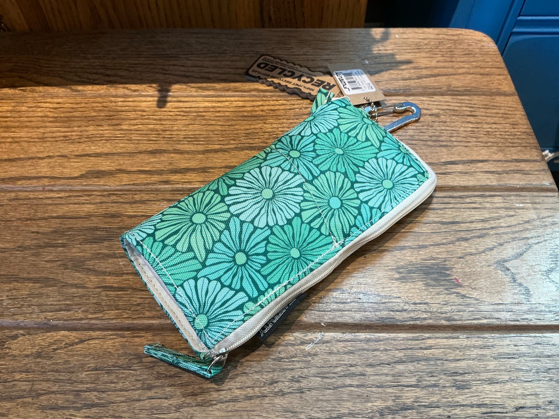 Sunglasses case made from 100% rPet recycled plastics. Measures 3.5 inches by 7.5 inches. Zippered and comes with carabiner for easy carry.