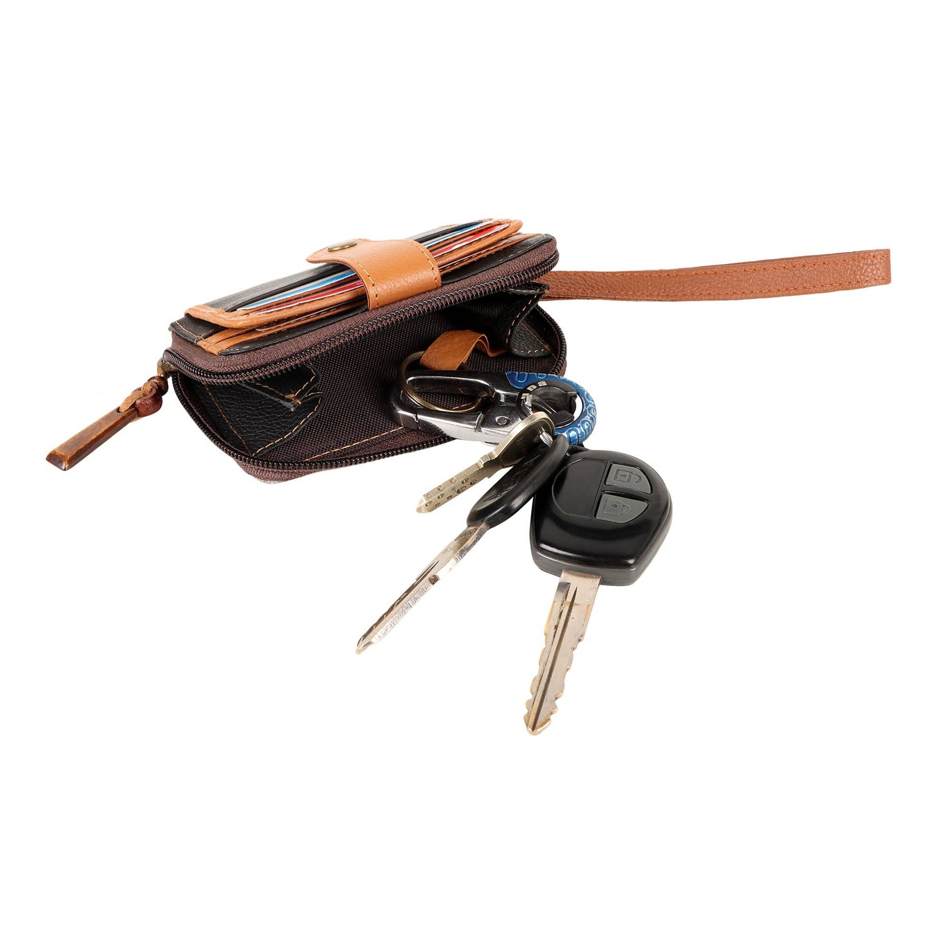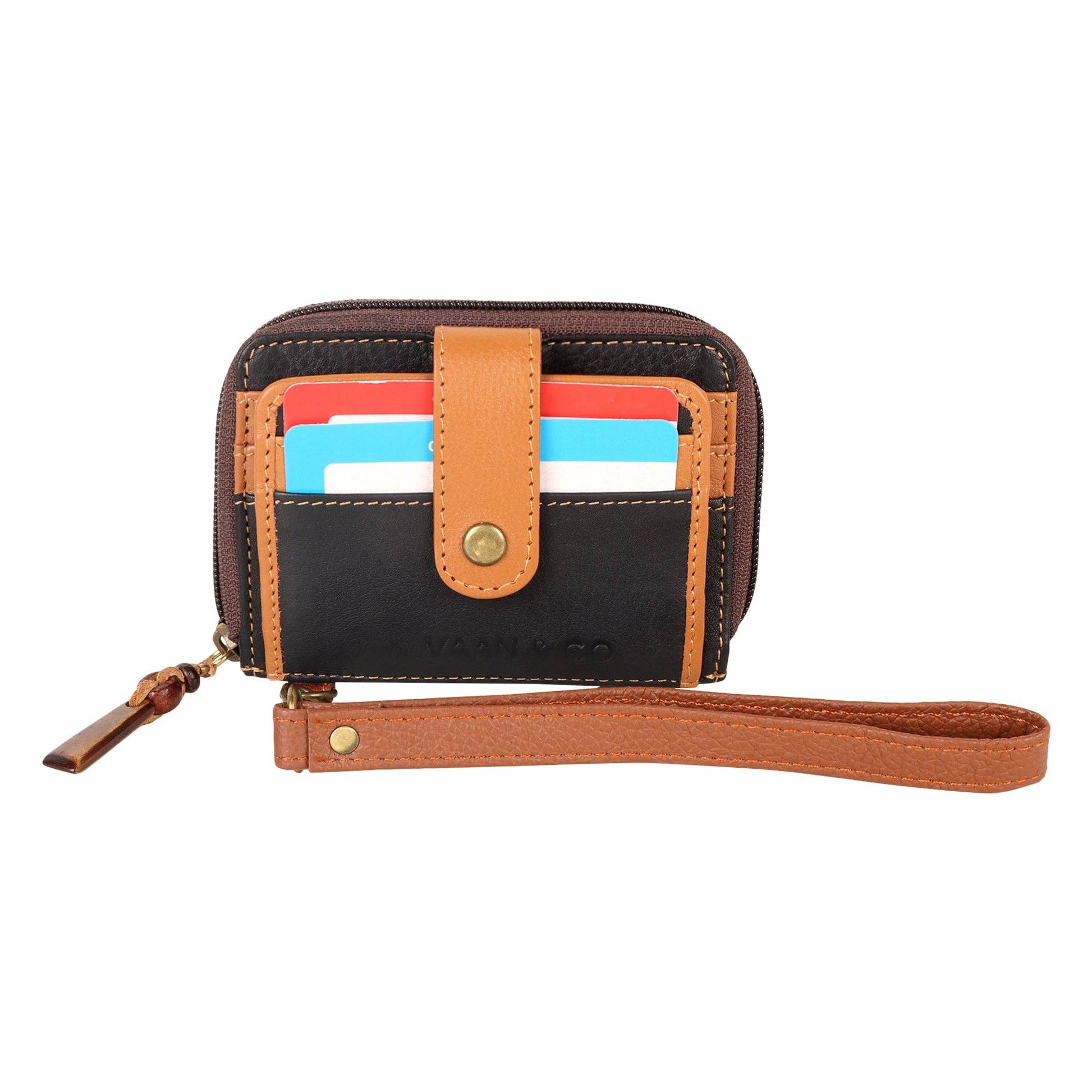 Compact and functional, this upcycled leather wallet is perfect for people on the go. The zippered pocket allows for cash, coins, or an extra card to be stored as needed, with plenty of card slots on the side; and the best part? It's all RFID protected!